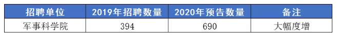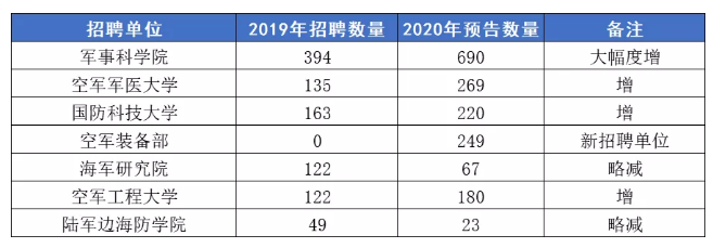 此外,上圖的空軍裝備部是2020年首次發(fā)布文職人員招考預告信息,從而也說明了2020年軍隊文職招考會有一些新的招考單位加入進來。