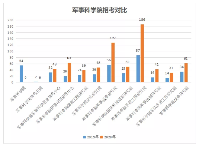2019年和2020年軍事科學院各機構招錄人數(shù)對比數(shù)據(jù)