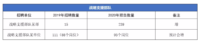 戰(zhàn)略支援部隊是一個大的系統(tǒng),根據(jù)已經(jīng)發(fā)布的機構崗位數(shù)量來看,新增的招考數(shù)量和崗位數(shù)量都有明顯的變化,預計戰(zhàn)略支援部隊招錄文職人員會更多。